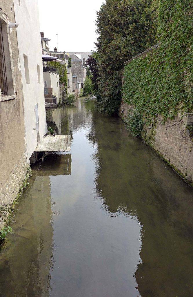 Au niveau de la passerelle Victor Hugo, un petit détour s'impose pour voir l'écluse de la Marolle : 4,80m de dénivellation et 1000 m3 d'eau. A ce moment, un plaisancier décida de partir, ce qui m'a permis de voir l'ouverture et la fermeture de l'écluse, exécutée par deux éclusiers (indiqués par 2 flèches bleues).